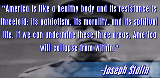 Joseph Stalin saying how to destroy America